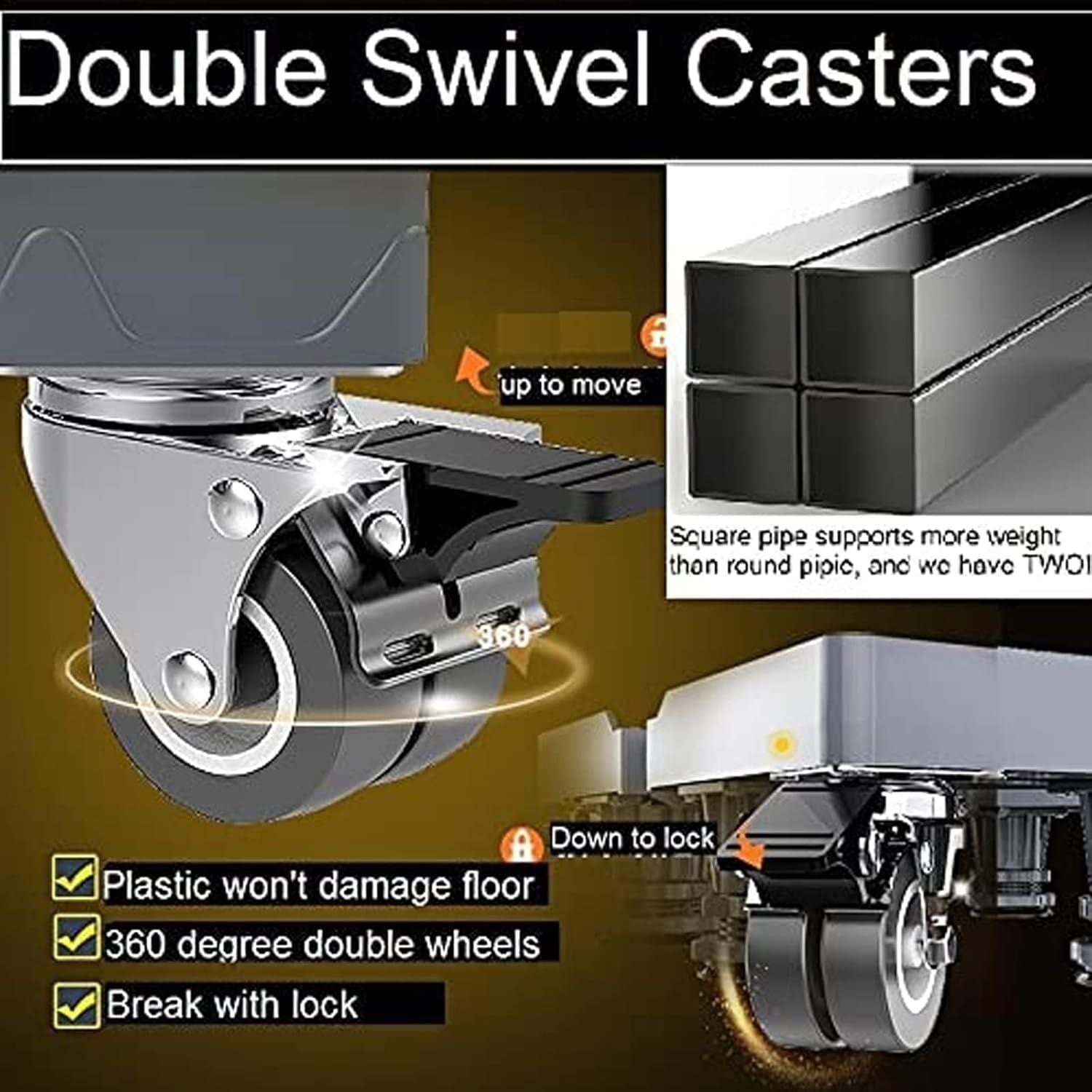 Made with strong stainless-steel tubes that resist rust and last longer. The stand has 4 wheels + 8 legs for extra support, giving excellent stability and strength. Can hold up to 55.5kg, perfect for heavy home appliances. -