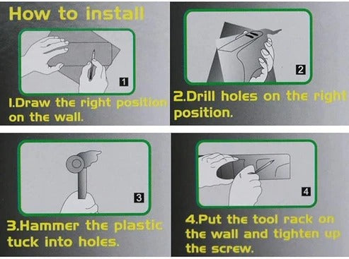 Designed to hold a wide range of tools like mops, brooms, rakes, shovels, dusters, and more. Perfect for keeping cleaning supplies and garden tools off the floor and organized.